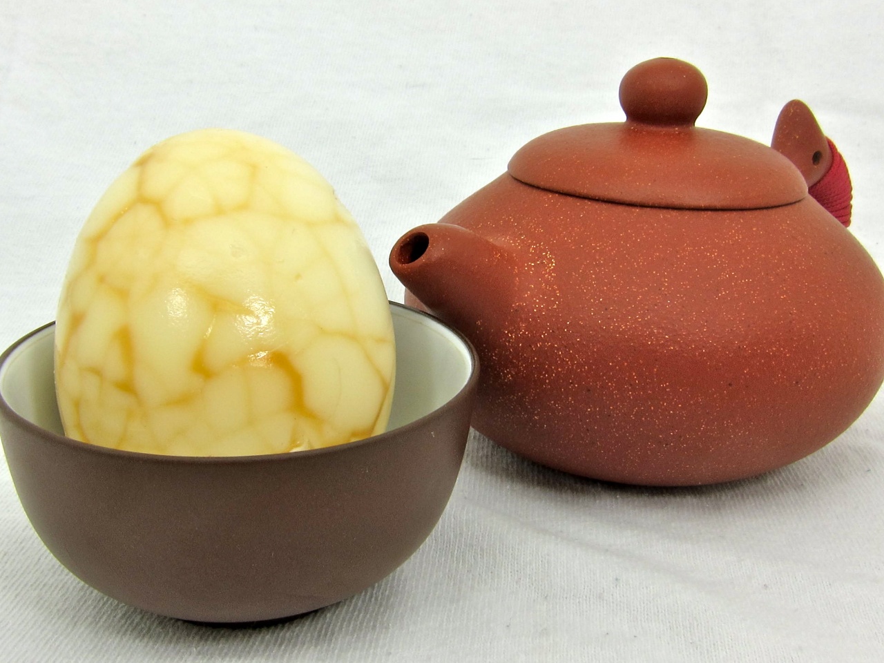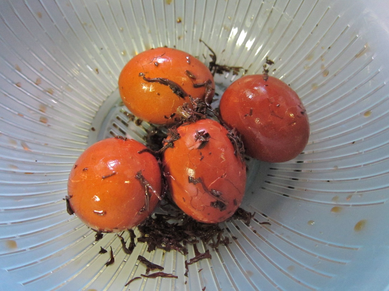Hard boiled eggs marbled with fragrant soy, spices, and Chinese black tea.